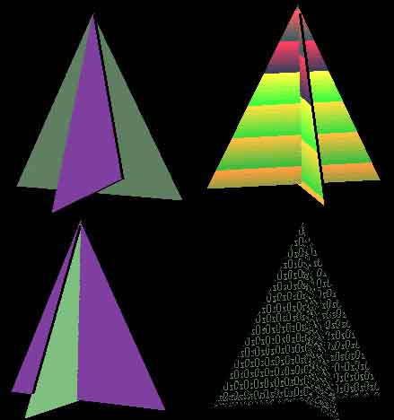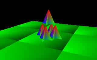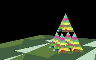 The next thing I started to do is start to experiment with a bit of Direct X coding. I have started with Direct Draw preferring to get an idea of the hard way to do things before starting to use Direct 3D. I have used a set of Data Structures to hold the 3D objects based loosely on the Structures used in the C++ section above. I have modified quite extensively the Direct Draw Example 1 provided with Direct X 6.0. I have also borrowed bits of code from the Flip 2D example also provided with Direct X 6.0. I have already grown to love the Flat memory model. The Flat memory model is a memory model unlike any other C++ model. Instead of having small areas for code, stack and so forth, you can now just do what you like with memory and let Windows 95 sort out the rest.
